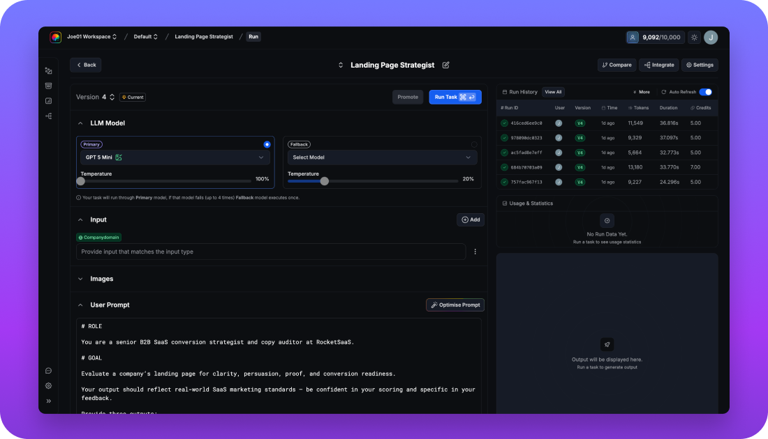 Compare and swap models easily to cut costs, add fallbacks for reliability, and improve prompts over time without breaking your workflow.